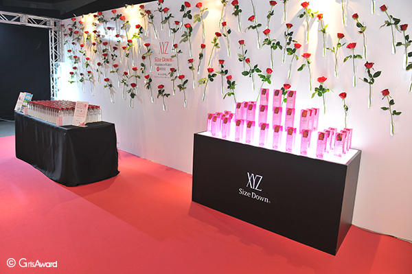 加湿器に入れてアロマオイル代わりや、仕事中・デート前のほのかな香り付け、生肌水としても使用できる万能なお水にみんな大注目。ブースではそのXYZサイズダウン フレグランスウォーター ローズをプレゼントしました♡